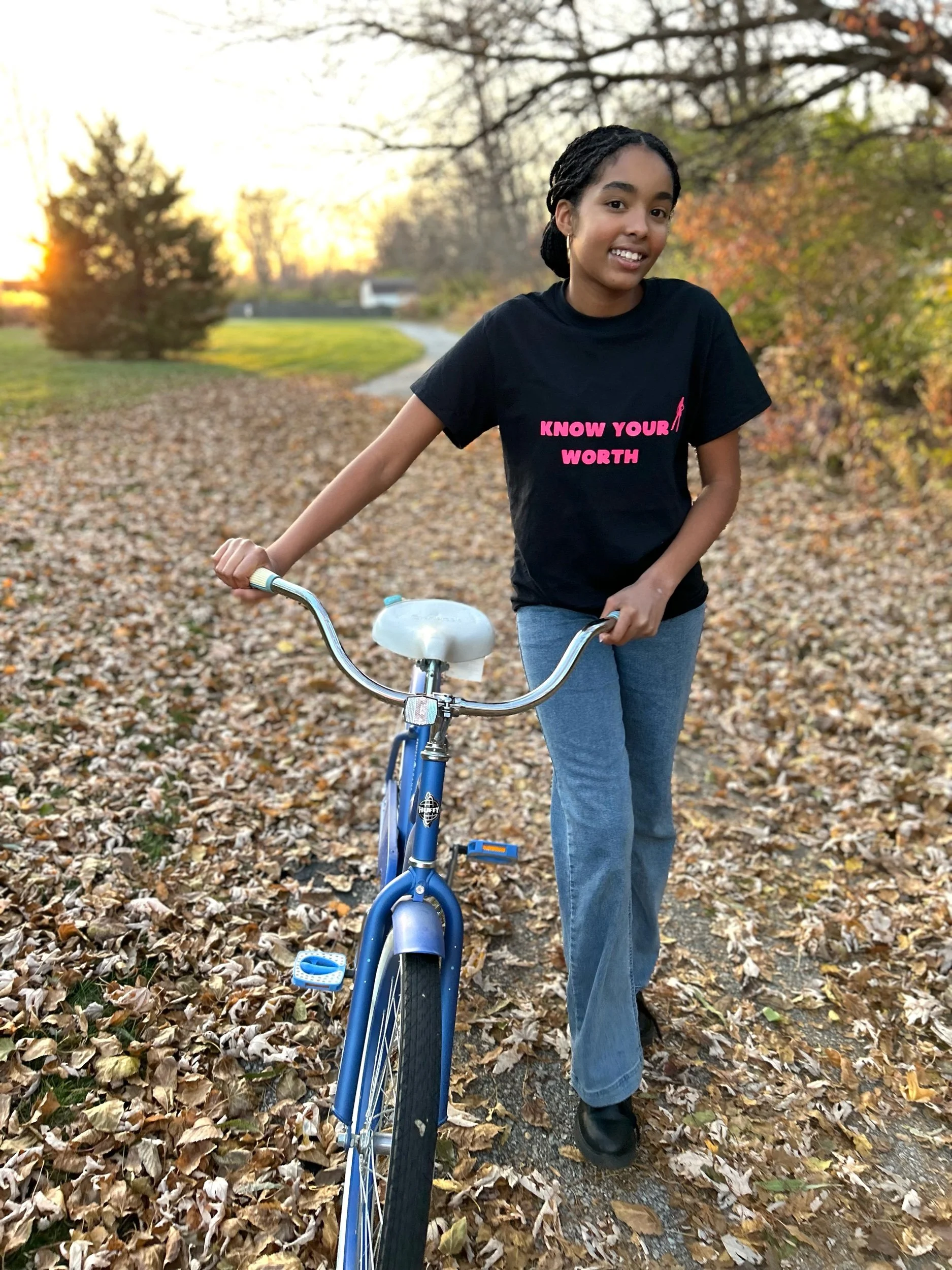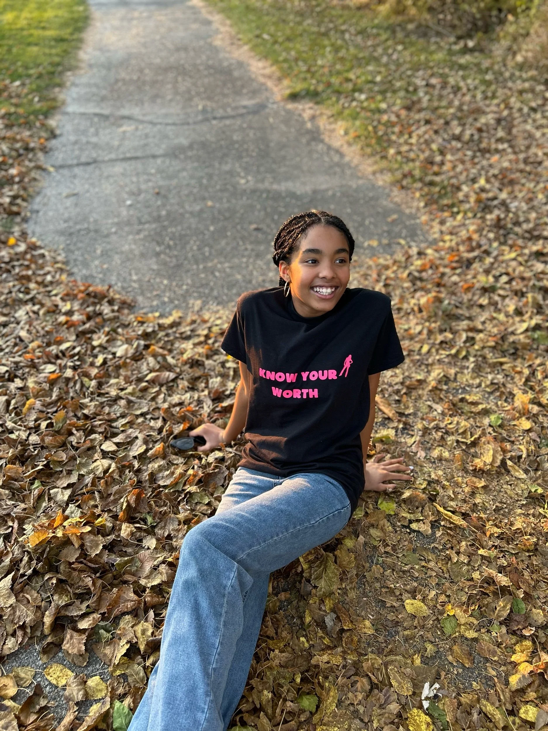 Shop › Know Your Worth T-shirt in black Image 1 of 4 Image 2 of 4 Image 3 of 4 Image 4 of 4 Know Your Worth T-shirt in black $10.00 Size: Select Size S M L Xl Color: Select Color Black Quantity: Add To Cart Added!